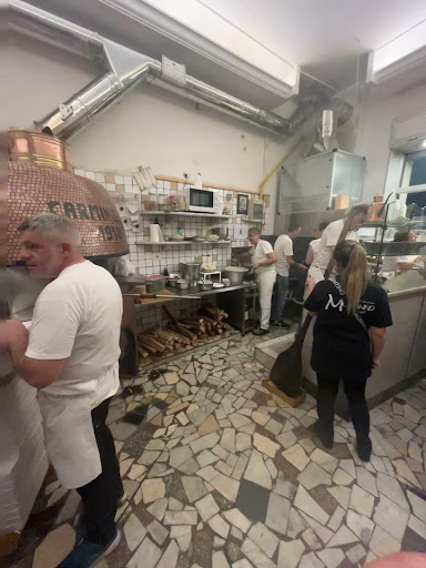 the place is very simple unpretentious and non touristy - its a neighborhood pizza joint - service was very good with at least one person with perfect english working there