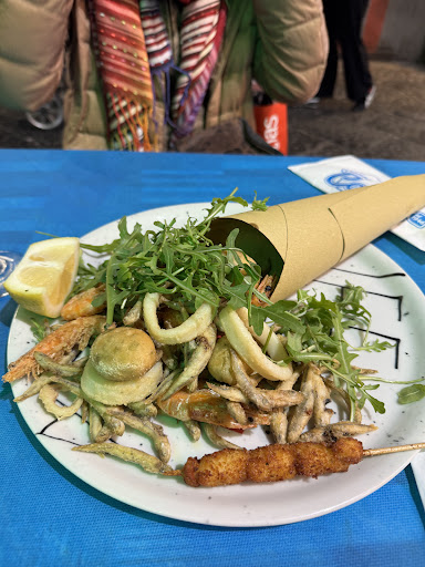 Read moreThe atmosphere is really good. We had lunch outside, so in spaccanapoli and you are surrounded by what you expect, lots of people, street artist and a nice happy atmosphere. The servise is good, very quick and kind persons. The food is excellent...but that is almost everywhere in Napoli. The prices considering the fact that is central and also you are a tourist still seem ok although for sure you can have cheaper options in Napoli. Quality good, quantity good...we had cuoppo terra, cuoppo mare and also a zizzona di battipaglia. You will have the " coperto" and the 10% service extra but it is written in the menu. Higly...
