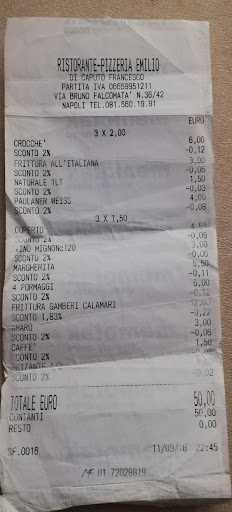 Sono cresciuto nel quartiere, poco lontano dalla storica Pizzeria Emilio. Prima che fosse costruito e poi aperto il ponte che collega via Caldieri a via De Ruggiero, via Falcomatà era un passaggio quasi obbligato per raggiungere molte destinazioni del Vomero. La pizza a portafoglio di Emilio, comprata e mangiata camminando camminando, era un ottimo antidoto contro la fame atavica di noi ragazzi. Il primo prezzo che ricordo è di 150 lire (del vecchio conio). Ai tempi del liceo la pizzeria si sceglieva in base al rapporto prezzo/qualità (più prezzo che qualità, invero) e Emilio si difendeva bene sia sul prezzo sia sulla qualità ed era un luogo di ritrovo abituale.
