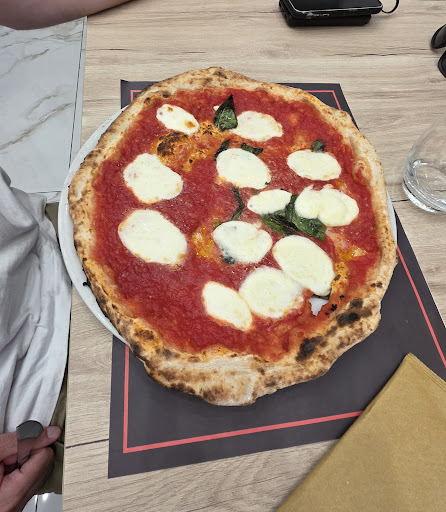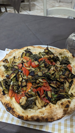 Read moreCi siamo trovati per caso in questa pizzeria, seguendo le indicazioni trovate sul web. Il posto è carino e le persone che ci hanno accolto sono state molto gentili. Abbiamo ordinato una margherita normale, una bufala e una con mortadella e pistacchi. Le pizze non erano il massimo e dalle recensioni, mi aspettavo di meglio. L'impasto non lo abbiamo ben definito: pizza sottile ma nè morbido e nè croccante, direi quasi secco. Probabilmente, visto il tardo orario, non era lievitata a dovere o il forno non più caldo alla giusta temperatura. In ogni caso, tra gli aspetti negativi c'è sicuramente la bufala totalmente asciutta, laddove questo tipo di mozzarella rilascia molto più latte che avrebbe ammorbidito l'impasto, dando consistenza e sapore (la foto evidenzia tale problema), e la mortadella e pistacchi, con fettine tonde di mortadella confezionata di supermercato, con poco sapore, mentre mi aspettavo una bella fetta grande e fresca da salumeria. Forse la migliore è stata proprio la semplice margherita. Sicuramente sarà stato un caso eccezionale, leggendo le altre recensioni, ma per noi è stata un'esperienza appena sufficiente. Alla prima occasione ci ritornerò...