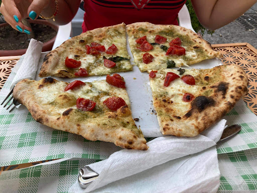 Delicious and affordable pizza. Marguerita DOP was perfect and the Vesuvio stuffed crust pizza also good. Drinks were cheap, 66cl peroni for 3 euros! Not fancy, but good. Fast and great service. We also ordered the Georgian meat dumplings 1euro each (min. 5) which everybody seemed to be having by adding lots of pepper - these were also good. It was a 15min walk from the station, through quite a dodgy area near the station, so I would probably not go alone, or at night, if coming from that direction. On the way back to the station, we got some sflogliatelle from an antique forno attanassio. Check Google maps, rather than follow signs on the street, and don't forget to take a ticket at the door for the line. Also delicious, best I've had. Perfect for our 1.5 hour...