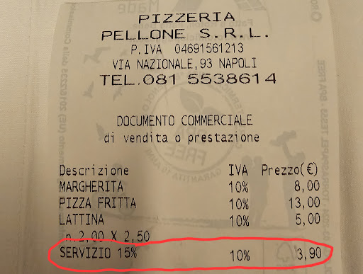 Read moreHaving read rave reviews of the restaurant I had to try out their margherita pizza, in Naples the birthplace of Pizza. The pizza was nice. The tangy fresh tomato paste on the pizza was delicious. And the pie crust was also delicious. The crust however was burned in some places on the edges, and I threw some away. The gobs of melted mozzarella cheese are hard to chew and swallow. The prices have increased (end of September/23.) I paid 8 euros. They have a separate English menu for visitors on which they automatically charge 15% gratuity. The waiters definitely provide no service to earn the 15% gratuity, and Italy does not have a compulsory gratuity on restaurant bills. I insisted on paying my bill with a credit card. They were not happy about it, but if you insist on following customs of my home country and charging me uncalled for gratuity then you should accept credit cards, since I use them for pay even the smallest charge.