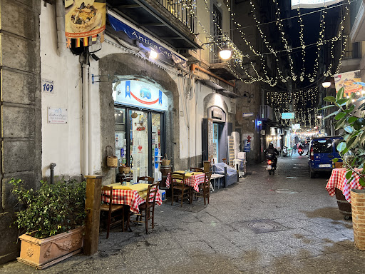 Food lacked taste in general! -The cornamusa with prosciutto and mozzarella is a real joke for 10 euro pizza Margherita had no taste at all, being in Naples?!?! -meatballs napolitan are no original as they are boiled, no pineputs not raisin... -coteletta scalalopina 🤣 no comment la carbonara was at least tasty! the seafood pot in pizza dough looks nice but is way too fishy in taste. Housewine for 8 euro a bottle is a winner!