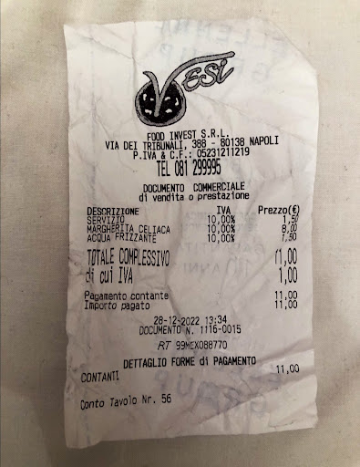 Read moreFirst bad experience in Naples. Stay away. Food was average and service okay but the scam happened when attempting to pay. Asked if I wanted to pay cash or charge. Replied charge, then the server pleaded for me to pay in cash. I agreed, although it wasn't my preference. Then told Bill was 35 euros. Thought that was high so asked for itemized receipt. Receipt shows final charge of 29 euros. When I ask about the extra 6 euro charge, I was told it is for the 3 euro per person service charge. I show the server that there is a service charge on the receipt for 2 x 1.50 = 3. He states that the 6 euro charge is on top of the final bill and that is how it is done in Italy. I tell him that is not my experience and I only pay the total bill. He then offers my a 5 euro note, still one euro short of the 6 euro overcharge and just leave. Food was basic and you can definitely do...