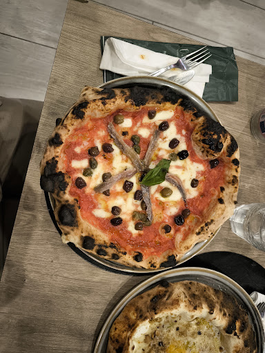 Read moreMolto deluso rispetto le mie aspettative. Volevo provare la pizza dopo aver visto tanti video di Vincenzo Capuano. Pizza contemporanea. Questa recensione non ha lo scopo di criticare bensì di fornire spunti di riflessione nella speranza che possano servire a migliorare. Venerdì sera, locale del Vomero eravamo 4. Posti all'aperto terminati. Trovato posto subito all'interno. Molto rumore a partire dalle sedie di metallo che nel movimentarle facevano un gra rumore in quanto oltre al materiale poco adatto per un interno mancavano di feltrini o gommini sotto per evitare quei rumori fastidiosi. Ordinati 4 crocché e 4 pizze. Crocché arrivati subito, abbastanza buoni e croccanti. Da quel momento avbiamo atteso più di mezz'ora per le 4 pizze. Il locale non è grande ed è inspiegabile questo ritardo. Inoltre la sala al chiuso oltre ql rumore delle sedie era fastidiosa nel rumore delle altre persone. Il problema è il rimbombo, locale piccolo e soffitto basso. Manca un soffitto fonoassorbente che possa attutire i suoni che rimbalzavano. Non si riusciva a parlare. Arriva la mia pizza con scarola olive, pinoli acciughe. Mi aspettavo molto di più riguardo il sapore. In ogni caso impasto morbido e soffice del cornicione ma forse troppo sottile la parte centrale in quanto la mozzarella e olio ammorbidivano troppo il centro della pizzache perdeva la sua croccantezza. Si notava molto oleosa la pizza comecindimento. Le scarole, non so, non erano rustiche, poco cotte e saltate in padella velocemente ma quasi sottolio. Magari non lo erano però era ingiustificabile quell'olio. La pizza era disequilibrata nella consistenza dell'impasto rispetto il condimento un po' eccessivo forse. Non è stata una serata piacevole. Davvero si faceva fatica a parlare e poi quella sala era sciatta, poco curata, al muro fili penzolanti e strutture in ferro senza un senso. Pareti semplici senza un'anima. Manca un sistema di aereazione. Non hanno chiesto green pass. Tutto strano. Mi dispiace ma non ho avuto una piacevole serata. Spero che vincenzo accolga i miei spunti per ottimizzare un po' il locale sia nei tempi che nella cura degli...