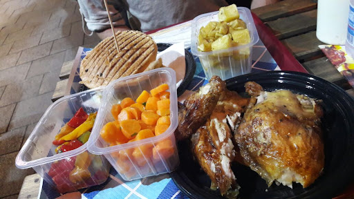 Il locale, pur essendo piccolo, ha reso l'ambiente esterno in modo molto carino, con tavolini in legno e fiori colorati. Ovviamente si tratta di un localino alla mano, predisposto per mangiare pollo, patate, e cibo di questo genere, sarebbe sbagliato aspettarsi l'aspetto di un ristorante di lusso. Nonostante ciò vi assicuro che ha un suo stile. Il pollo molto buono, così come i panini e i contorni, che tra l'altro sono biologici. Anche le patate, che dalla maggior parte dei venditori di pollo allo spiedo vengono preparate male, avevano invece un buon sapore, anche se ancora migliorabile. Il servizio è abbastanza rapido. Non ha posti all'interno. I prezzi sono medi, forse leggermente altini per il tipo di locale, anche se la qualità dei prodotti giustifica questo leggero sovrapprezzo rispetto alla media. Abbiamo pagato 23 euro in totale per mezzo pollo allo spiedo, panino con doppio hamburger doppio formaggio e patatine fritte, peperoni, carote, patate al forno e due bottigline d'acqua. Unica grande pecca è l'assenza di un bagno, motivo per cui ho messo 4 e...