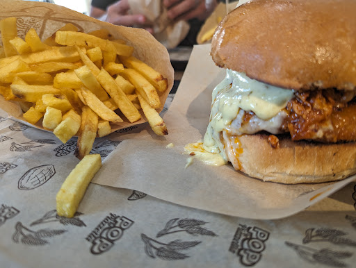 Read moreBellissimo locale, richiama i tipici fast food americani (per favore, non paragonate loro al solito Mc'Donald's o Burger King). L'attenzione ai minimi particolari si nota, eppure tanto! Personale accogliente, socievole e giovane! All'entrata c'è una signorina che ti indica le loro specialità e come funziona (ben fa, visto che quando entri senti la necessità di avere un aiuto). Purtroppo non ho potuto darle abbastanza soddisfazione perchè arrivavo da una giornata di lavoro dura ed ero molto stanco, e sono andato giusto per non restare digiuno. Una volta ordinato ti consegnano un dischetto piccolo che una volta pronto il tuo ordine vibra e ti permette di avvicinarti alla cassa: Un panino con hamburger di chianina, formaggio e cheddar...gustoso! Il panino tenero come deve essere e ingredienti di qualità, accompagnato il tutto da una birra fresca. Ne è valsa la pena, ne vale pena e ci ritornerò. La prossima volta però mi farò spiegare meglio tutti gli altri panini, li dovrò provare tutti!