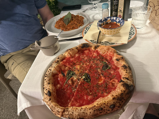 Stumbled into this place as we were waiting for our hotel next door to be ready. There's a guy on the street who barks at you in Italian and comes across the street to rope you in. Hesitant, but hungry and new to the area, we decided to follow him in. It's in the middle of 2 other restaurants under tents that all look like it's the same restaurant. The food was kinda "meh"... to be fair, we were looking for a light lunch, so we only ordered Bruchetta and Pizza. The Bruchetta was on hard, stale bread. Even toasted it took the jaws of life to get through it. The pizza was okay... when I finally got sauce on it. We ordered 2 pizzas, my partner got one with ham, and I ordered the Regina Margherita. As you can see by the photos, the pizza was a decent size, but it barely had toppings. Mine came with no sauce... ???? Um, what? They gladly gave me a bowl of sauce (which was awesome sauce BTW), but that alone took 20 min. because the waitresses forgot and disappeared, so my pizza was a little cold now. There were only 3 tables with people, so it's not like it was chaotic or anything. Anyways... this place is "ok". You won't starve, but you won't be like, "This was the best ever!" Personally, I didn't like it, but I didn't try anything else on the menu. The one thing that made us a little happier... was the old man who came to the table to play and sang a nice tune for us. That's what added to my...