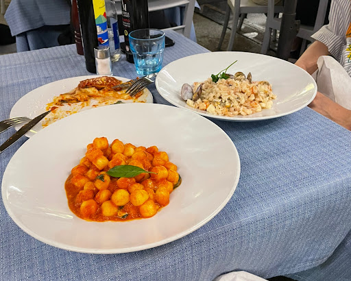 I live near this strip of restaurants and frequent them often to find the best one to take guests to…and this one isn’t it. I gave them a second chance today after a negative first experience and will not be going back. They started by refusing to allow me to sit in front a fan while there were only 4 other tables. The pasta was overcooked to a texture that was barely edible. The aperol spritz was good. The bread tasted stale and old. When trying to pay the bill, the waiter repeatedly informs me service is not included…we are already paying above cost for shitty food with a view, and then the servers are trained to inform patrons that the tip isn’t included and requests a tip. They even linger around the table until you put the tip down. Avoid this poor...
