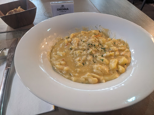 There are a lot of places to eat well in Naples, but this restaurant is worth seeking out if you want to eat delicious food in a stylish, warm, modern setting at a modest price. We started with bruschetta to share between the two of us - simple but perfect, piled high with chopped tomatoes. I had pasta Genovese with octopus which was a special for the day. Nothing to do with pesto genovese, but a napolitan dish based on pasta with onions. The devil is in the details: the service, the presentation of the food, the pasta cooked to perfection, and perfectly moist. The flavours of the onion and the octopus. My partner had a simple spicy pasta with tomatoes and percorino, "turned in the frying pan" (saltato in padella) Again it's the quality of the ingredients and the cooking to perfection that made the dish stand out. Often a mixed salad is a sad affair - this was fresh, large, varied in it's ingredients and served with an excellent olive oil (we shared this too) A glass of white wine, a delizia di limone to share and we had had a lunch to remember with pleasure. All...