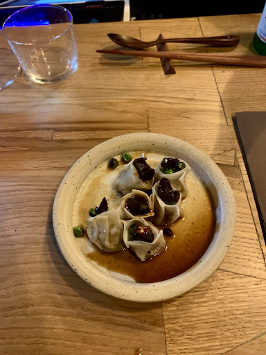 Gyoza ripieni di stracotto di manzo seppie crude e salsa al levistico Il piatto che mi ha convinto di più, veramente notevole la qualità del raviolo e azzeccato l’abbinamento carne pesce.