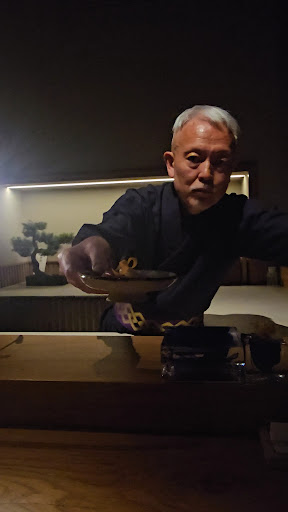Read more🌟 La recensione definitiva 🌟 4 giugno 2025 Atmosfera coinvolgente: abbiamo trovato il ristorante come un vero e proprio viaggio in Giappone, grazie ad un’atmosfera raffinata, intima e minimalista, con luci soffuse e materiali naturali che richiamano la tradizione giapponese. Percorso sensoriale: La proposta gastronomica è incentrata sul kaiseki, la cucina tradizionale giapponese che si basa sull’equilibrio dei sapori e sulla stagionalità degli ingredienti. L’esperienza è un percorso culinario che stimola tutti i sensi, quindi non é solo un semplice pasto. Cucina e Servizio: I piatti sono stati preparati davanti agli ospiti da un maestro giapponese, con grande attenzione alla materia prima e alla tecnica. Non si trovano piatti occidentali come salmone o Philadelphia (e meno male), ma solo autentica cucina giapponese. Narrazione e accoglienza: Ogni portata è accompagnata da una spiegazione dettagliata da parte del titolare e da Diego, che descrivono ingredienti e preparazioni. Il personale è gentile, premuroso e attento, e spesso viene menzionata la presenza della moglie dello chef che contribuisce all’atmosfera autentica. Carta dei vini: l' ho molto apprezzata in quanto vi sono alcune eccellenti proposte francesi. Esperienza indimenticabile: L’esperienza è consigliata sia a chi si avvicina per la prima volta alla cucina giapponese, sia a chi ha già visitato il Giappone e desidera rivivere quei sapori.