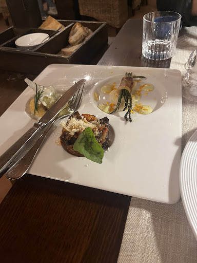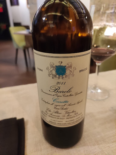 Read moreDavvero un bel locale, molto accogliente ed anche facile da trovare . Avevo letto che c’era qualche problema a parcheggiare, invece il locale ha un parcheggio interno che può ospitare circa 10 auto, piccolo neo, quindi entri con l’auto si alza una polvere atroce che sei costretto ad attraversare per poi andare nel locale, io opterei per cambiare il suo, magari asfaltando. Il locale come dicevo in precedenza si presenta molta bene, una volta comodati ci invitano per un aperitivo in cantina al piano di sotto, aperitivo che mi ha molto garbato, sia per la qualità che per il gesto, ed in più il cameriere che lo serviva, che in seguito ci ha anche accompagnato per tutta la cena, aveva davvero una bella verve. Una volta tornati al tavolo ci hanno servito il loro vassoio di pane, che comprendeva anche grissini ed una focaccia, il tutto accompagnato da un olio davvero buono. menu molto elegante ed una lista dei vini che poteva fare concorrenza alla Bibbia per quanto grande. Abbiamo proseguito con un assaggio di tutti i loro antipasti, decisamente squisiti ed anche vegetariani, dato che ero l’unico che mangiava carne al tavolo, abbiamo proseguito con una tagliata per me, eccezionale, morbida e cotta alla perfezione, ed un piatto di spaghetti (unico piatto vegetariano, ma se vai in questo locale, mangi carne) che non era buonissimo, leggermente freddo ma comunque buono, unica nota un po’ sotto il resto della cena è stato il dolce. Hanno anche un’ottima scelta di distillati, ed il cameriere insieme al mio whiskie mi ha portato due biscotti al cioccolato fatti da loro che erano decisamente molto molto buoni, meglio del dolce. Quindi un’ottima cena ed un prezzo davvero consono per la qualità ed il servizio . Unica nota negativa della serata, il parcheggiatore, che nn era presente quando siamo usciti dal locale, per poi rincorrerci e quando gli ho dato la mancia (1 euro) si, non è molto ma non avevo monete, mi ha risposto in maniera molto burbera “con questo ti prendi caffè” e me lo ha ridato ed è andato via brontolando, questo l’ho trovato decisamente...