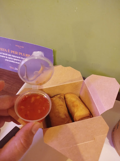 Read morePiù che buona esperienza: in due abbiamo ordinato Popia Tod (involtini), Saté khai (spiedini di pollo marinato con curry) accompagnato da una salsa d’arachidi spettacolare (m’aspettavo fosse difficilmente digeribile e invece no), Kao Pad (senza salsa di soia), in ultimo - ma non per rilevanza - Kaeng Daeng Khai con riso in accompagnamento. Partendo dagli involtini, dimenticatevi quelle robe surgelate tipiche dei 3/4 di locali che fanno cucina medio-orientale: mai mangiati involtini con una sfoglia così friabile come i Popia Tod; gli spiedini di pollo sono leggeri ed hanno un’anima di curry che gli conferisce un sapore particolare e sapido; il kao pad (noi l’abbiamo volgarmente ribattezzato “risotto alla cantonese” per la sua “”similitudine””** col riso nostrano) senza salsa di soia è parimenti buono e saporito; infine il pollo con bamboo - piccante piccante ma mangiabilissimo - con riso bianco: è stato un sapore nuovo ed è stato molto apprezzato, anche nell’abbinamento con riso scondito a contrastare il mix di condimenti del pollo. Cucina a vista di piacevolissimo vedere (tra l’altro complimenti per la pulizia dell’ambiente). Prodotti la cui qualità risiede evidentemente nelle materie prime che utilizzano. Servizio non celerissimo ma, di venerdì sera, è più che accettabile, dal momento che è tutto preparato al momento. Personale gentilissimo: ci hanno visti in moto e hanno spillato la busta e messo al sicuro il pollo con del cellophane. Spesi 34€ in coppia, conto onestissimo!