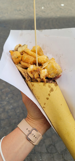 Arrived around 14:10. First in line to order. Ordered at 14:13 and was told it would take 5 minutes. It was 12 euros for the mixed cop. After 25 minutes finally got my food. If i hadn't had paid at the begining i would have left. I am pretty sure that they lost my order as many people who showed up after me got their food before me. The first half of my cone was cold. The bacala and pulpo were the best pieces the rest was very soso. If i would have gotten the food within 10 minutes of ordering i would have given it a better review (3/5stars) but I was over the meal after waiting 25 minutes. Also 12 euros was a bit much for what you received especially for Naples (i didn't eat it all, but most people could easily finished it). The food is fresh however which is a plus but my experience...