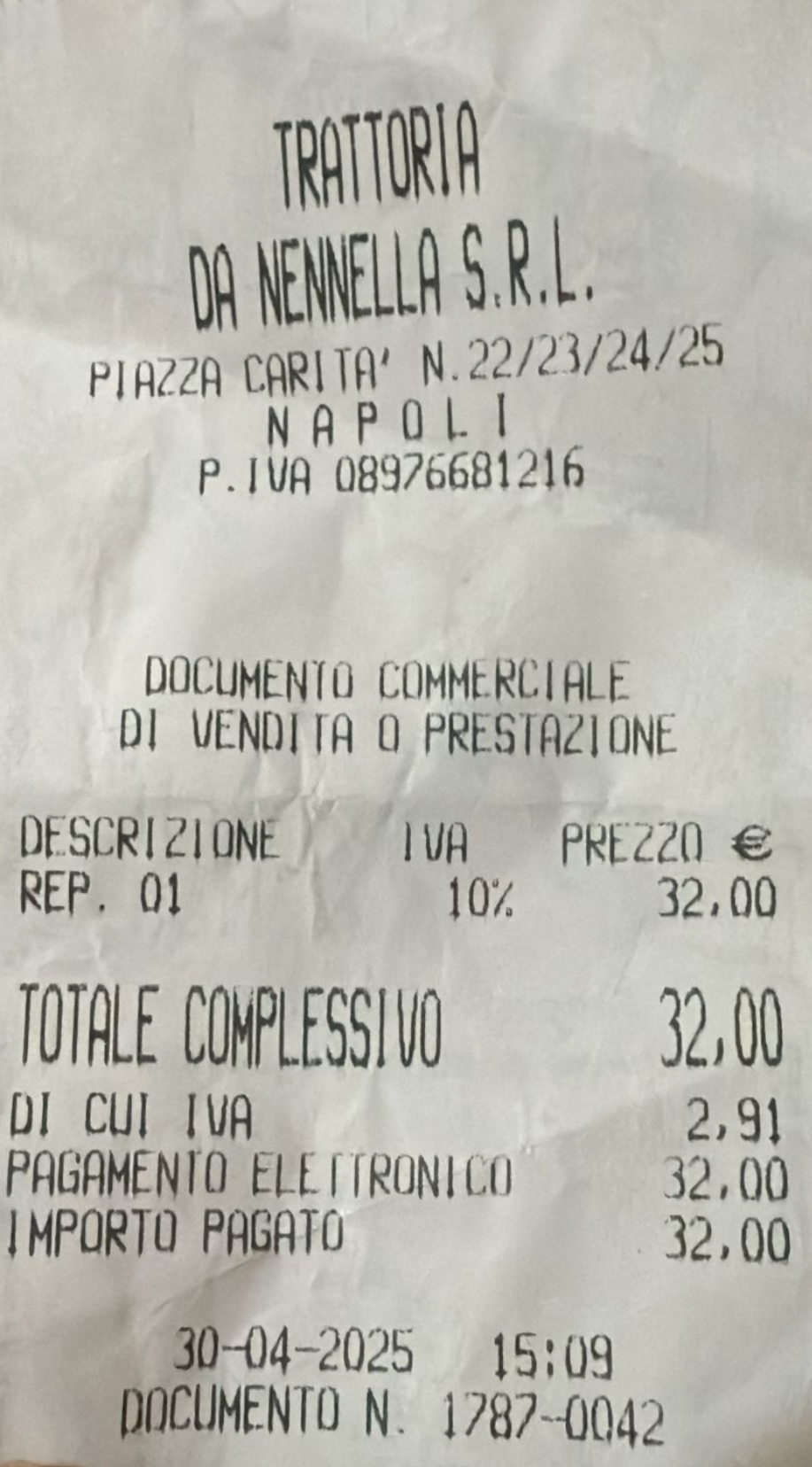 However, nothing prepared me for what happened at the end. As I was leaving — having already paid the bill — an older man grabbed me by the arm and arrogantly asked: “Dove vai senza pagare?” I was shocked and scared. I told him I had already paid, and, trembling with embarrassment, I showed him the receipt.