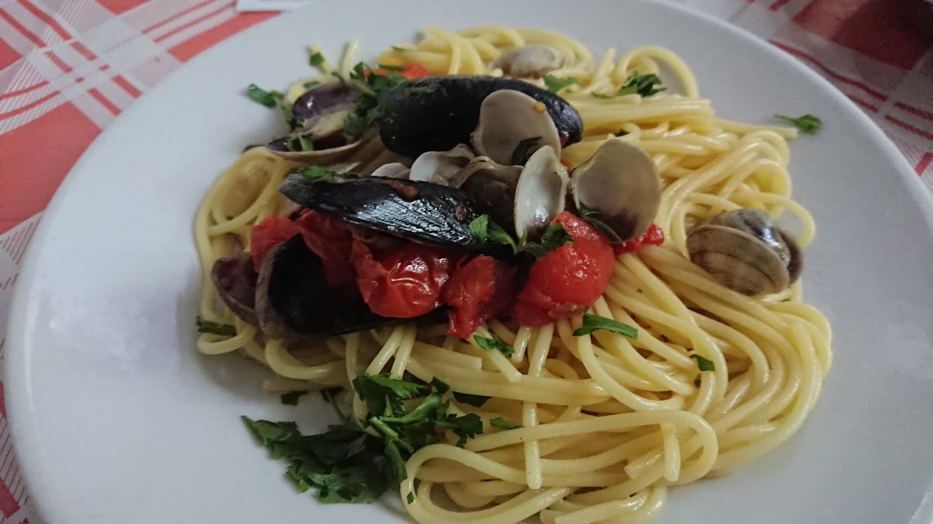 The waiters here seem to enjoy their work and really fast and efficient. They take your order first for the main course and then again for the second course. Although they don't explain how it works, you'd have to ask. Looking at the reviews apparently the complete menu comes with the side but they didn't ask if I wanted a side (saw other tables ordering) and was too full to eat more! Dishes are on the large side though they don't seem to have the starter any more. Food wise the pasta with mussels and clams was just average, but the mixed fried fish and shrimps were pretty good! It was Italian street food, exactly what I was looking for the whole evening before chancing upon this place! (Italian websites call it cuoppo but none of those I went to had seafood).