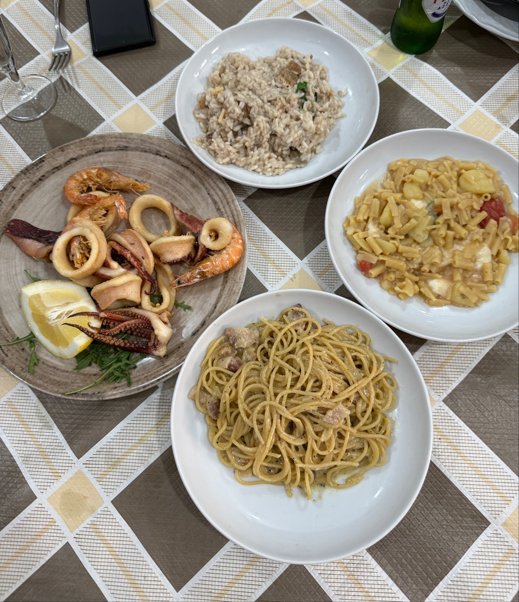 The pasta dishes we had were good and we had a nice wine to go with it. However, we also ordered a caprese salad which came without basil (or if it did then it was a tiny amount of dried basil) - I’m not sure if that’s normal or not in this part of Italy but not something I've come across before. We ordered croquettes too, which were decent, despite arriving late.