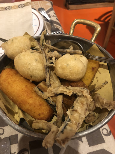 Nel mentre di decidere cosa mangiare abbiamo ordinato un paio di fritture che sono arrivate con mezz'ora di ritardo. Considerato il prezzo degli arancini che abbiamo chiesto ci aspettavamo una portata consistente, invece sono arrivate delle palline di riso piccole e asciutte.