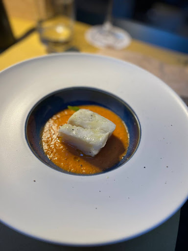 Ma parliamo del piatto che ha davvero rubato la scena: il baccalà con gazpacho di peperoni e pomodori San Marzano. Questo piatto è una delizia per il palato e una vera opera d'arte culinaria. Il baccalà, preparato con maestria, era tenero e succoso al punto giusto. Il gazpacho, con il suo sapore intenso e fresco, era il complemento perfetto al pesce. L'uso dei peperoni e dei pomodori San Marzano di alta qualità conferiva al piatto un sapore ricco e autentico. Ogni boccone era una sinfonia di sapori, un connubio perfetto tra tradizione e innovazione.