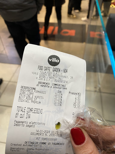 Read moreScortesi e pietosi al massimo. Non è la prima volta che andavo (ma questa è stata l'ultima), ogni volta che vado mi accomodo ai tavolini ed ordino sempre la solita cosa: "Aperivilla alcolico". Prima della situazione covid, questa tipologia di spritz l'ho sempre pagata 5 euro, ma post-covid l'hanno incrementata di 1 euro (nonostante abbiano diminuito di tantissimo la quantità di stuzzichini che servivano vicino allo spritz). Dopo aver consumato l'aperitivo mi dirigo verso la cassa per pagare e, dopo il mio dire "non ho i 6 euro, ho la 20, mi dispiace" la cassiera, con tono sgarbato mi risponde "non viene 6 euro ma 7". Io educatamente rispondo che non era la prima volta che andavo e consumavo la stessa cosa, ed inoltre sul menu il prezzo di questo aperitivo è di 6 euro, poiché 7 euro costa l' "Aperivilla alcolico speciale" che a detta della cameriera è uno spritz con alcolico doppio. Lei dice che nel menu non è compreso il servizio al tavolo. Grandissima bugia, perché un caffè ad esempio al banco costa 1 euro, mentre sul menu ai tavoli costa 1 euro e 50. Ed inoltre sul menu non è annotato nessun appunto sul servizio (poiché, ripeto, è compreso nei prezzi del menu ai tavoli che sono più alti rispetto a quelli se consumi al banco). Non ci ritornerò, e ribadisco, personale...