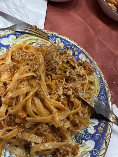 We ordered the grilled eggplant in olive oil to share, a Mimosa pizza (ham, cheese, corn), and the Naples must-try of Pasta Genovese, plus a soda & a beer. The portions were an excellent size for the price. The pizza's toppings were fresh and generous. The Pasta Genovese tasted clearly of the meat sauce, had numerous portions of meat, and was not too salty (another restaurant's recipe was too tomato-y, and too salty). The food was delicious!