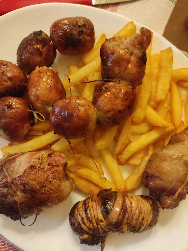 🏴 Sausage mostly fatty and undercooked Pork ribs just fatty and no different from the kind you'd get at a place like Old Wild West Lamb rolls tasted old Olive oil of a quality similar to what you'd find in a supermarket (a good example of high-quality extra virgin olive oil from Puglia would be that from Oleificio Cooperativa Riforma Fondiaria Nardò) Cooked chicory seemed a few days old and was priced as if it were more flavorful than it actually was €4 cover charge for 2 people... Long wait despitw few customers to serve