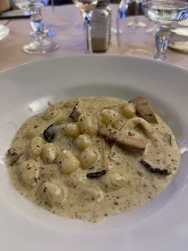 Read moreDi solito sono riluttante dal recensire in negativo, questa volta però mi sento di doverlo fare. Ci ritroviamo in questo ristorante attirati dalla particolarità della sala e della proposta. Ci ritroviamo in una bella atmosfera, curata ed elegante. Prendiamo due menu degustazione, cominciamo con gli antipasti: crostini con fonduta di formaggi francesi, due fette di pane precotto scaldato e con sopra due fettine di formaggio (un solo tipo), e un salmone marinato, la marinatura scialba e non correttamente eseguita in effetti il salmone sotto era praticamente cotto. Continuiamo con i primi, forse la peggior portata: gnocci pomodoro e gamberi, gnocchi duri che galleggiavano su un guazzetto rossastro insieme a dei gamberi (troppi) così slegati da sembrare bolliti a parte, non puliti e sicuramente non freschi, l'altro primo era un raviolo al tartufo nero, ravioli stracotti affogati in una salsa fatta interamente di panna e olio con sopra una polverina nera che forse era il tartufo, dico forse perché sinceramente sapore e odore non pervenuti. I secondi sono stati un filetto o entrecote (sinceramente non ricordo) al pepe verde dove abbiamo ritrovato la stessa salsina del raviolo che tendeva al verde, e l anatra cotta al sangue (che sarebbe dovuta essere la cottura del filetto) in salsina sempre salvata e senza senso. Unica nota di merito il vino, abbiamo scelto un bordeaux veramente buono. Piacevole anche il cognac a fine pasto. Una recensione a parte meriterebbe il servizio impeccabile.