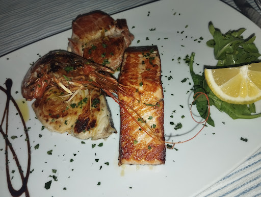Read moreI prezzi sono più alti rispetto alla media dei ristoranti sul mare (ma questo non è un problema perché sono indicati sul menù e ognuno ordina sapendo a cosa va incontro) e il cibo, tutto sommato, è buono, anche se l'85% dei piatti ha tra gli ingredienti i pomodori e questo non lascia ampia possibilità di scelta a chi ne è allergico (comunque qualcosina da mangiare, arrangiandosi, si trova ugualmente). Ci sono però due grandissimi difetti che devono essere rivisti, soprattutto in virtù dei prezzi più alti rispetto alla media e dell'esperienza "cena di pesce in un ristorante sul mare" che dovrebbe essere qualcosa di "lusso" in quanto non proprio alla portata di tutti: il locale è eccessivamente caldo e afoso (siamo tornati a casa completamente fradici di sudore) eppure basterebbe accendere i numerosi ventilatori appesi al soffitto e poi la quantità di zanzare, moscerini e insetti che pungono ovunque è impressionante e non lascia godere piacevolmente della serata (tra caldo e prurito non vedevo l'ora di andare via). Altro aspetto poco simpatico è che ogni cameriere serve qualsiasi tavolo, dedicando quindi ad ognuno una scarsa attenzione... di conseguenza bisogna chiedere ripetutamente le stesse cose perché di volta in volta tra chiamate in cucina, accoglienza, raccolta degli ordini e chiamate dal tavolo x, dimenticano cosa...