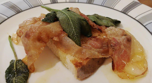 Barbazza con aceto e salvia su bruschetta, da sognarla anche la notte.