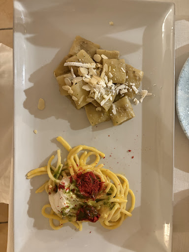 Read moreCi ha consigliato questo posto la ragazza alla reception del Museo Eroli di Narni. Ci siamo fidati e... diamine, se abbiamo fatto bene! Il posto è in una posizione ottima con un dehor con una vista sulla valle. La struttura è bella, forse l'unica pecca è che il suono nella sala rimbomba parecchio (e se ci sono dei bambini chiassosi è quasi fastidioso), ma questo non influisce sulla mia recensione. Abbiamo preso il misto di salumi, uno più buono dell'altro, come antipasto. Una bella portata, perfetta per due persone. Poi ci siamo lasciati tentare da un piatto di pasta (fresca, fatta a mano) "ai tre pomodori, basilico liquido e burrata", assolutamente squisita, e da un piatto di ravioli ripieni di pecorino e zafferano, con ragù bianco di cinta senese (che prevedevano anche il tartufo...ma alla mia signora non piace, quindi è stato omesso), anch'essi delicatissimi e deliziosi. Concluso con un dessert, una tartelle con una specie di mousse alla nocciola e coulisse di lamponi. Accompagnato il tutto con un Malbec molto particolare, un vitigno sudamericano ma coltivato in Umbria.