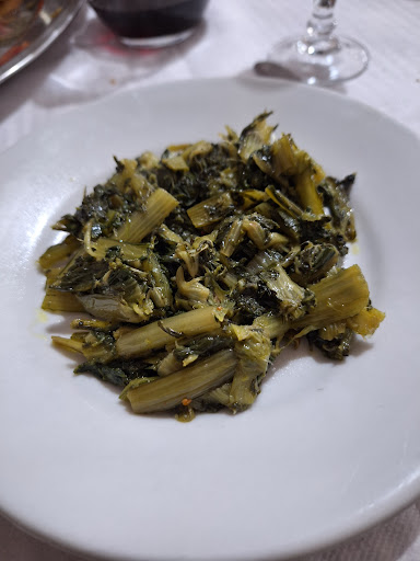 Abbiamo cenato stasera in questa trattoria perché consigliata caldamente dalla proprietaria della casa vacanze dove alloggiamo. Locale arredato vecchio stile, anni '70. I primi piatti molto buoni e i sapori sono quelli di una volta, del "fatto in casa". Il servizio però, nel nostro caso, ha lasciato molto a desiderare: scarso savoir faire e cortesia da parte di quella che suppongo essere la proprietaria; nonostante fossimo arrivati prima, siamo stati serviti dopo altri clienti (e non pochi); abbiamo ordinato due bistecche di manzo, ma siccome a dire della proprietà ( e di questo anche, ho i miei dubbi!) non ce n'era abbastanza, di due ne abbiamo preso una di vitella; la carne ordinata al sangue...era veramente troppo al sangue, il che per quanto riguarda il manzo ci può stare...ma la vitella abbiamo dovuto chiedere che fosse rimessa sul fuoco...è tornata semi carbonizzata da un lato e ancora cruda vicino l'osso. La sorpresa l'abbiamo avuta con il conto, onesto per tutte le altre portate eccetto che per le due bistecche (e segnate entrambe come manzo sul conto)... 56 euro!!! Non sono sicura al 100%, ma ricordo che il manzo costasse 9 € l'etto, ora...avremmo mangiato più di 6 chili di carne in due?? Non credo proprio! Abbiamo pagato e siamo andati via senza troppe storie, ma sicuramente non...