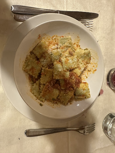 Dopo tante curve ecco l'agognata meta. In un antico paesini di poche anime, la trattoria offre del cibo della tradizione ben preparato. I menù è fisso con due possibili opzioni. Quella "standard" è così composta: cuculli con del salame, antipasto diverse torte salate liguri, primo ravioli al tocco, secondo arrosto cn patate, dolce, caffè e amaro in chiusura. Le torte salate sono ottime, i ravioli, seppur forse un po' troppo cotti, fatti in casa e il sugo pur saporito è leggero. L'arrosto molto saporito e buono con "vere" patate al forno. I sapori della nonna... In alternativa ai ravioli e arrosto è possibile avere su prenotazione pansoti alla salsa di noci e fritto misto all'italiana, ma devo dire che - essendoci tornato apposta per provarli - preferisco ravioli e arrosto, perchè i pansoti... non sono pansoti ma una sorta di medaglioni (buono il ripieno), la slasa di nci è una crema che di noci sa ben poco e il fritto misto è povero di varietà. Le poraioni sono abbondanti ed è disponibile il "doggy bag" per portare via quanto lasciato. Ci si può tornare, ma tra...