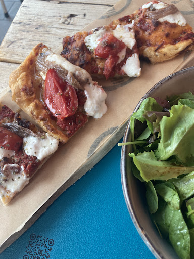 Pausa pranzo. Locale molto carino e anche un po’ affollato, il che faceva pensare che si trattasse di un posto ricercato e anche con prodotti di qualità, in parte lo posso confermare. Mi sono avvicinata al bancone molto invitante con pizze e focacce, ho ordinato un trancio di pizza vegetariana (4,80€) riscaldato e da mangiare lì, perché avevo poco tempo a disposizione ed era anche la prima volta che entravo in questo locale, quindi, non sapendo i tempi di attesa, ho preferito optare per un qualcosa di spiccio. Fino a qui tutto bene, anche perché la pizza era molto gustosa (diamo a Cesare quel che è di Cesare). Mi sono seduta ad un tavolo non apparecchiato, perché ho pensato che i tavoli apparecchiati fossero per coloro che facevano una pausa pranzo un po’ più sostanziosa (e non come il mio umile trancio di pizza). E qui arriva il bello.