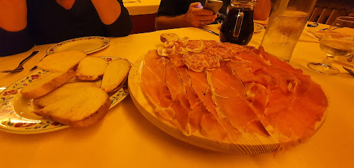 Non mi sono trovata bene. Il servizio distratto, la ragazza sicuramente lavorava tanto ma con molte aree di miglioramento, una cortesia distratta e fredda, una attenzione molto relativa (per richiamarla alla fine mi sono dovuta alzare) la precisione nel prendere la comanda, la conoscenza dei piatti. Ho rimandato indietro il primo con un piatto per tre quarti non mangiato, dopo aver provato il primo ho fatto cancellare l'ordine per il mio secondo...una cameriera professionale avrebbe almeno dovuto chiedere gentilmente come mai e se poteva essere di aiuto. Sarà il sabato ed il locale pieno? se sì, magari prevedere del personale in più? il Cameriere invece rasentava il limite dell'accettabilità. Dopo aver pagato ( e non prima, dal momento che sono abituata a pagare) ho voluto spiegare il motivo del mio scontento. Mi sono trovata difronte ad un rigido palo che non capiva, dal tono sulla difensiva. Ho chiesto se poteva riferire ai cuochi ( "cosa DEVO dire? che il primo non andava bene ed il contorno era troppo poco?) dopo essere stata a spiegare in modo tranquillo e cortese una risposta del genere appariva una presa in giro. "lasci stare, non DEVE dire nulla, lasci stare". Mah, sarà meglio una recensione negativa? Per chiudere: patate al forno unte e bisunte, sapevano solo di rosmarino, verdura alla griglia ho chiesto solo zucchine: sei fette sottili sottili sottili, semicrude condite con abbondante olio chiaro dal sapore indefinibile €4,50 - mi è sembrato troppo per quella roba lì - pane: abbiamo visto solo grissini, primi piatti: ragù di carne e ragù di coniglio stesso identico sapore! tanto che mi è venuto il dubbio ed ho chiesto. Per amanti del burro che hanno stomaci non delicati, per me indigeribile e quasi disgustosa. carne salata che ha preso mio marito: buona. Altro non ho voluto prendere. Ah, si, le l"lasagnette" fatte da loro: lisce-liscissime, mollicce. Capisco: de gustibus non est disputandum. Magari altri romani come me non troverebbero gradevole. Ma anche a mio marito veneto trevigiano, non ha fatto...