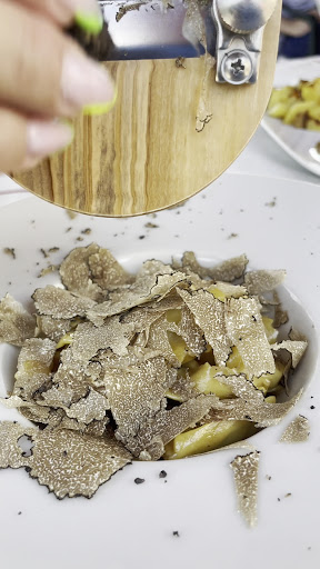 First of all I want to share that we had a great lunch! Food was incredibly tasty! Presentation has margins to improve but the quality and the taste of the food were amazing. The Location is beautiful spot in the middle of the hills surrounding Alba. I believe chairs and tables could be improved in terms of quality and comfort but it’s a minor detail compared to the quality of the food. The staff was very attentive: everybody were welcoming and polite, but when we walked in, one waiter hear that my wife was speaking English and immediately began addressing her using that language. This was so appreciated...