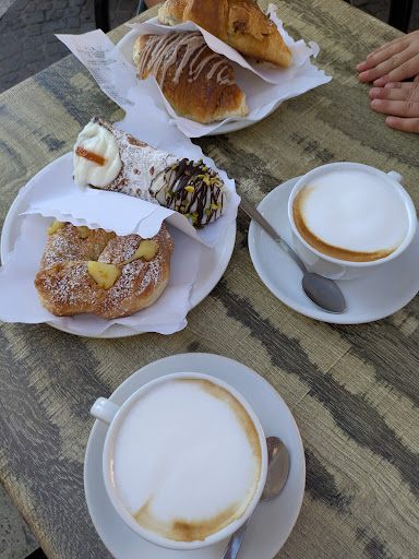 Read moreCortesia nonostante il tanto lavoro che devono gestire. Il croissant a forma di ciambella, che non avevo mai visto da nessuna parte (al mondo), e che ho ho fatto fatica a scegliere in una vetrina con centinaia di pezzi ognuno con forma e colori diversi: mi volete confondere? (quale prendi? ...e che ne so! Come faccio ad analizzare tutte queste brioches?), mi ha ribaltato in una dimensione alla quale non so dare un nome, mi ha messo in contatto con dei pensieri che non so da dove venissero, ...e qualche lacrima è fuoriuscita dagli organi della vista. Mi sono dovuta fermare, e respirare lentamente per qualche secondo, prime di concludere la prima colazione. So che il cibo può essere sacro, trasporta le emozioni di chi lo produce. Sono...