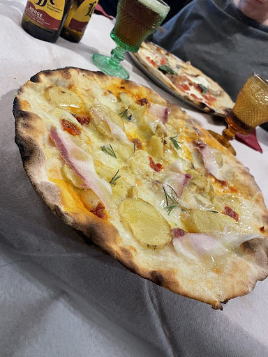 Read moreSabato sera, prenotiamo e siamo due adulte con ben 4 bambini di cui un neonato di 7 mesi. Premesso che ci danno il tavolo all' interno, dove i tavoli sono uno attaccato ad un altro e per passare con il passeggino ho dovuto fare alzare tutti, il seggiolone ne hanno solo per bambini più grandi ( senza divisori per le gambe) quindi niente mi tengo in braccio il neonato che però deve mangiare . Aspettiamo ben un ora per la pizza, quell' ora passata ad urlare per poter parlare con la mia amica vicina di sedia, tanto la musica era alta e non solo, il proprietario ogni 5/10 minuti metteva luci colorate ed alzava a tutto volume brani tipo Baglioni..Zarrillo ecc rendendo la permeanza con i bambini davvero difficile e soprattutto con il neonato. Alla mia richiesta di abbassare per poter cenare in serenità, il proprietario ha chiaramente fatto orecchie da mercante ed ha continuato il suo show. La pizza di per sé, non è male, buona, non eccellente, probabilmente se il clima era più calmo avremmo potuto cenare decentemente. Sconsiglio a famiglie con bambini, soprattutto all' interno perché oltretutto...
