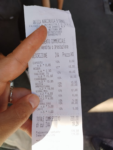 Read moreNon giudico il servizio perché hanno avuto problemi con il cameriere che per problemi di salute non si è presentato a lavoro e ciò ha causato comprensibilmente un pò di ritardi. Salumi e formaggi con delle particolarità (alcuni realizzati in produzione propria), quantità adatta ad una persona (meglio prenderne uno a testa se non volete dividere in mini pezzetti ogni cosa). Non ci è stato presentato un menù con i prezzi (è pur vero che non l'abbiamo chiesto, fidandoci del fatto che nel Lazio le fraschetterie hanno più o meno prezzi standard). Eravamo in 6 e abbiamo ordinato 3 antipasti, 6 primi, 2 brocche di vino della casa (da 0.5 L), 2 bottiglie d'acqua, 2 cheesecake, 1 fetta di crostata di visciole, 1 amaro e 4 caffe: 168 euro in totale (28 a testa). Credo un pò troppo per una...