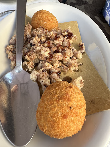 Abbiamo ordinato antipasti misti tra cui sono arrivati i moscardini fritti che accompagnati da un buon vino bianco, regalano un'estasi al palato e altri piatti tutti ben eseguiti e bilanciati.
