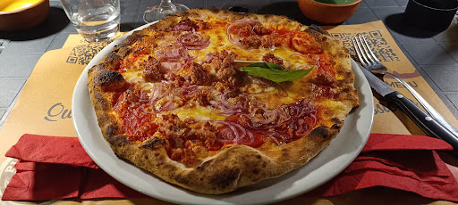 Siamo stati ieri in questa pizzeria per festeggiare il compleanno di mia madre...cibo insapore e servizio pessimo. Ci siamo seduti alle 9 e ordinato l antipasto che ci arrivato dopo 10 min sbagliato, abbiamo preso il crocchettone Mortadella e pistacchio e il pistacchio era inesistente, abbiamo ordinato 2 frittatine di pasta e ci e arrivato un arancio con riso preso scolato messi 3 piselli dentro e fritto (immangiabile) volevo dar fiducia lalla montanara alla parmigiana ma nulla era ancora peggio dei precedenti, il sugo sopra era cucinato male senza sale con melanzane nn fritte e senza parmigiano (una parmigiana anomala visto che lo duce pure il nome) ho chiesto a 3 camerieri differenti di portarmi x favore una fettina di prosciutto x il cane e tt mi dicevano che stavano chiedendo (forse si farà richiesta al Papa) Ma il bello arriva ora, le pizze ci sn state portate dopo 2 ore xche si era persa la comanda nonostante i continui solleciti ai ragazzi in sala che hanno sempre risposto che erano in uscita senza mai andare a sincerarsi se fosse realmente così...abbiamo mangiato xche noi ci siamo alzati dopo tt qst attesa x andare a vedere senno stavamo ancora aspettando...arrivano e insapori pure qll...wowwww Ci chiedono scusa e dicono che ci avrebbero offerto il dolce e volevamo rifilarci una pizza fritta con la nutrlla giusto xche a loro costa 1 euro, ovviamente nessuno la voleva, chiedo che dolci avevano e il cameriere mi fa la lista dei gelati....ribadisco che ho chiesto dolci e avevano solo il tiramisu (vastissima scelta proprio come silla pagina) In conclusione pessima figura con gli invitati e...