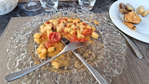 Read morePer carità mai più !!! Sono stata in questo ristorante proprio questa sera e mi sono ripresa solo ora pesce crudo non fresco i gamberi erano ancora con il filo nero ( intestino) all’interno l’ho dovuto togliere io gli antipasti erano veramente vergognosi tra cui cernia con uvetta piena di aceto che copriva i sapori e ora ho capito il perché visto il mio stomaco ! Non era pesce fresco anelli di totano o calamaro con cipolla di Tropea idem pieni di aceto ... siamo scappati dopo gli antipasti e ora arriva il bello... alla cassa ci da il conto 1 bottiglia di vino 18 € e ci può stare acqua 2 € e ok 2 antipasti vip?????? Ma che vuol dire? 50€ dico 50 ma chi sei cracco ( due mini mini parmigiane due pezzi di 2 cm di tonno alla siciliana 2 pezzi di 2 cm di cernia pieni di aceto 5anellini di totano pieni di aceto frittura con 5 mini alici secche e aceto balsamico e fili di zucchine 2 pezzi piccoli di polpo su crema di ceci e 2 involtini di circa 3 cm di rana pescatrice nel guanciale (accettabili) 1 bruschettina mini mini con Alice 1 pezzo di carasau con fettina sottile di tonno di cm 4 cm Questo è un antipasto per due da 50 € 1 piatto per una persona di crudo € 20 dove ripeto i gamberi 1 rosso 1 bianco 2 mini gamberetti ai quali hanno lasciato l’intestino (pessimo) 1 scampo 1 mini mini tartar di salmone con fragole e 1 mini di tonno . Totale 90€ per 2 antipasti e 1 crudo Ma non è tutto alla cassa abbiamo fatto notare che il pesce non era fresco e dopo varie insistenze gli ho detto che c’era troppo aceto e che sappiamo bene perché lo fanno per mascherare il pesce andato a male e il proprietario mi ha capito perfettamente quindi tirando fuori i soldi dalla tasca ha lanciato 10€ euro sul bancone senza dire nulla come per dirci: vabbè tiè ve faccio altri 10 euro di sconto ! Con gran classe ho cambiato discorso e ho preso la non ricevuta , già la NON ricevuta e ho salutato e lui si è ripreso i 10€! Forse pensavi che eravamo due poracci che ci hai tirato quei 10€? Vabbè...