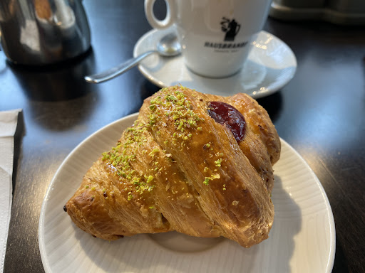 Read moreMi rattrista dover fare una recensione sfavorevole, ma mi sono sentito derubato. La parola è forte e cercherò di argomentare: posto abbastanza fruibile, nonostante l'ingresso su una rotonda molto trafficata, posti a sedere anche fuori per i fumatori, banchi belli da vedere e una certa varietà di prodotti di pasticceria. Il personale cerca di fare del proprio meglio, ma non sembra allegro e felice del proprio posto di lavoro. Magari sbaglio. Abbiamo pagato quasi dieci euro per due cornetti, un caffè e un tè caldo. Guardando lo scontrino, scopro che una tazza di acqua calda con una bustina di the può costare 4€. Non c'era neanche la fetta di limone... Il cornetto a 1,80€ non è poco quando, in pasticcerie che frequento per la bontà dei loro prodotti (crema pasticcera fresca fatta con bacche di vaniglia e impasto che usa il burro, non margarina o grassi a buon mercato), costa al massimo 1,50€. L'impasto è soffice e leggero, la crema c'è in abbondanza ma non eccelle. Anche il caffè supera il prezzo medio senza avere niente di straordinario. Delusione, non...