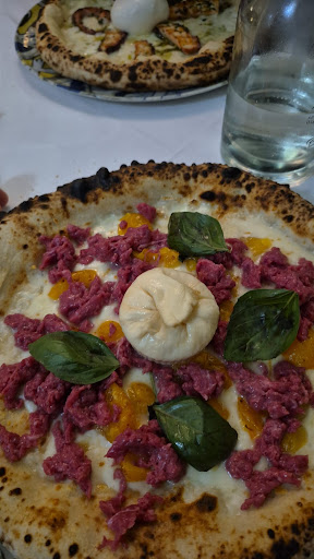 Locale accogliente con servizio gentile e disponibile. Bello che all'interno della sala ci sia la vista sulla cucina/forno per le pizze. Ci sono stato due volte, ambedue per mangiare la pizza: ne ho provate diverse e non ce n'è una che non mi sia piaciuta, poi ovviamente si va a gusti personali. Selezione delle pizze accurata, con diverse chicche gourmet che il menù offre. Bello che il locale utilizzi prodotti locali per preparare e/o arricchire i piatti. 4 stelle e non 5 perché da lato ristorante non so come sia il locale, anche se sono abbastanza certo che ci sia qualità anche in quella parte. Dolci semplici ma buoni. Basandomi sul prodotto che viene oggetto, qualità prezzo ottima. Peccato per il parcheggio davanti che non è molto grande, anche se nei dintorni si riesce comunque a trovare posto. Allego una foto con la pizza che presi...