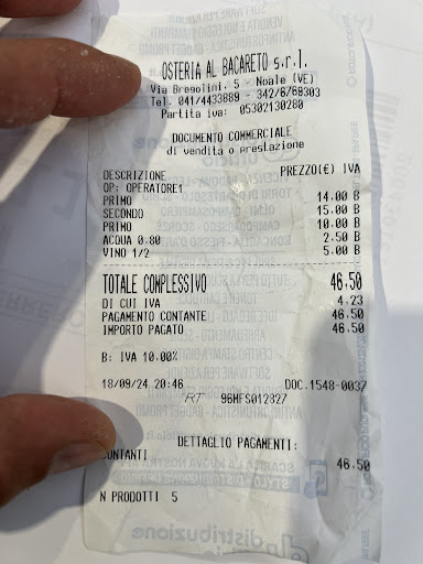 Io e la mia ragazza abbiamo deciso PURTROPPO di cenare in questa osteria. Prendiamo un primo in due tagliatelle ai gamberi con pesto di pistacchio e ricotta affumicata.Buona ma niente di entusiasmante porzione piccola e costosa 15€. Di secondo invece decidiamo di prendere piovra alla piastra con verdure ed un tris di baccalà. Buona la piovra gustosa e profumata accompagnata però da patate al forno una salsa e NON da verdure. Il BACCALÀ invece arriva con un odore NAUSEANTE un gusto pessimo come l’aspetto nel piatto. Chiamo la cameriera faccio presente la cosa e mi faccio cambiare pietanza, scelgo fiducioso e speranzoso di questa osteria un primo ovvero i BIGOLI IN SALSA. Dopo alcuni minuti di attesa mi arriva il piatto e noto già una grandissima pecca,al posto dei BIGOLI ci sono gli SPAGHETTI. Assaggio….NON si potevano mangiare da quanta sale c’era quindi ci siamo alzati ho riferito l’ennesimo disagio NESSUNO SI È SCUSATO TANTO MENO PREOCCUPATO DEL SERVIZIO OFFERTO. Ho pagato il conto ( compreso la schifezza degli spaghetti ) da persona civile ed educata NON CI...