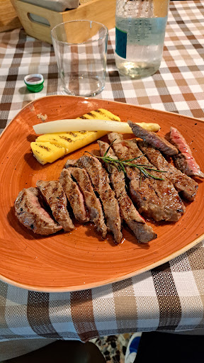 Read moreSiamo stati con amici qui... Ho chiesto una bistecca di puledro ben cotta ma sapeva da bruciato perché in effetti esternamente era bruciata (nella foto si vede). Mia moglie ha preso una bistecca di manzo ben cotta e non era ben cotta. L'ha rimandata indietro e quando è tornata comunque non era ben cotta. La nostra amica ha preso una tagliata mezza cottura ed era ben cotta... Non comprendo. Il nostro amico ha preso una pizza e sembrava buona, si presentava bene. Ho preso una birra in bottiglia molto buona, mi attirava la lupulus di cui mi aveva parlato un collega ma era un po' caretta (penso costi di suo un po' di più rispetto le altre). La location è bella anche se non mi è piaciuto che abbiano fatto entrare 2 senza mascherina che è obbligatoria dicendo che potevano tenere un fazzoletto davanti la bocca. Le cameriere sono tutte molto gentili, probabilmente saranno stati incasinati in cucina visto che siamo arrivati ore 20 che è...