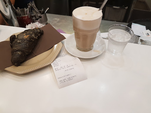 Read moreBar di tendenza sempre molto affollato, c'è una sala interna e tavoli esterni ma coperti dal palazzo sovrastante. Buona la colazione, cornetto e latte macchiato costano 2.30euro, ampia scelta di cornetti anche vegani, aperitivo meno soddisfacente per quantità e qualità. La cioccolata fusa che scorre dal rubinetto è una leccornia solo a vederla!!..il parcheggio è quasi sempre difficile poichè è sulla strada principale della città, ovviamente...
