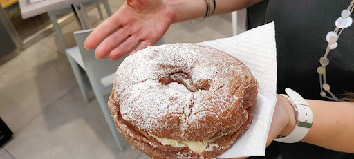 Ciambelle fritte con crema fantastiche, Rimane il mio parere più che positivo sulla bontà del prodotto. Ho da rivedere la mia posizione sull'organizzazione dell'azienda. Sono stato nei 6 mesi successivi alla prima recensione diverse volta in pasticceria. Praticamente ogni volta che passo sulla A2 una sosta è d'obbligo. Però per ben 2 volte, e con ieri 3, ci sono passato di domenica ed era chiuso. Mi sono lasciato ingannare dagli orari riportati su google maps che dicono dalle 5 del mattino alle 3 di notte. La penultima volta ho chiesto alla cassiera: ma la dom4enica siete chiusi? risp: noooooooooo siamo sempre aperti. Quando ho detto che per due domeniche avevo troavto chiuso, mi ha dato quasi del matto! Ieri, in compagnia di un'altra coppia di amici ripasso e alle 15,00 era CHIUSO. Peccato perdersi nei dettagli, o si aggiusta l'orario e si tiene aggiornato, o si fanno misere figure. Peccato davvero perchè la qualità di una azienda non si valuta solo su "com'è buona...