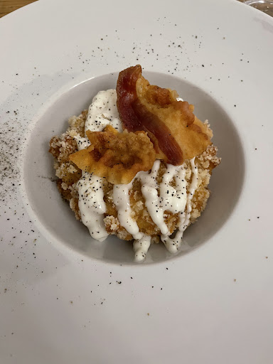 Ad esempio, il fritto al centro tavola veniva servito in un unico cartone condiviso, senza posate, piatti o basi individuali. Ho dovuto mangiare sopra un tovagliolo, direttamente sul tavolo privo di tovaglia o qualsiasi altra base. Questo dettaglio ha reso l’esperienza piuttosto sgradevole, dato che condividere così il cibo crea disordine e non offre alcun comfort.