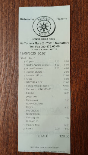 Read moreLa mia esperienza da " Nonna Maria " : Un'ode al gusto e alla convivialità: l'esperienza celestiale di Nonna Maria Nonna Maria non è semplicemente un ristorante, è un'esperienza sensoriale che ti avvolge in un abbraccio di sapori autentici e calore familiare. Fin dal primo istante in cui ho varcato la soglia, sono stato accolto da un'atmosfera accogliente e vibrante, un'armonia perfetta tra eleganza rustica e vivacità mediterranea. La mia avventura culinaria è iniziata con una sinfonia di antipasti di pesce, un trionfo di freschezza e creatività. Ogni portata era un piccolo capolavoro, un'esplosione di sapori che danzavano sul palato. Dalle delicate tartare di pesce crudo, che si scioglievano in bocca come seta, ai crostini croccanti con salse agrodolci, ogni assaggio era un invito a esplorare le profondità del mare. Ma il vero culmine di questa sinfonia è stato l'arrivo della premiata Assassina, un piatto che ha rapito i miei sensi e conquistato il mio cuore. La pasta, cotta al dente e avvolta in un sugo di pomodoro intenso e avvolgente, era un'ode alla semplicità e alla perfezione. Ogni forchettata era un viaggio nella tradizione culinaria italiana, un'esplosione di sapori che mi ha riportato ai ricordi d'infanzia, alle domeniche in famiglia e ai profumi della cucina della nonna. E che dire della compagnia che ha impreziosito questa esperienza? Le risate, le chiacchiere e gli sguardi complici hanno reso questa cena un momento indimenticabile. La loro presenza ha aggiunto un tocco di magia a ogni portata, trasformando un semplice pasto in una celebrazione della vita e dell'amicizia. Il servizio, impeccabile e premuroso, ha contribuito a creare un'atmosfera di totale relax e piacere. Il personale, sempre sorridente e disponibile, ha saputo consigliarci e guidarci nella scelta dei piatti, dimostrando una profonda conoscenza della cucina e una sincera passione per il proprio lavoro. Nonna Maria non è solo un ristorante, è un luogo dove il cibo diventa un'esperienza emotiva, un viaggio attraverso i sapori e le tradizioni della cucina italiana. È un luogo dove ci si sente a casa, circondati da calore e familiarità. Se cercate un'esperienza culinaria autentica e indimenticabile, Nonna Maria è la meta ideale. Lasciatevi trasportare dalla magia dei sapori, dalla cordialità del servizio e dalla gioia della convivialità. Non ve...